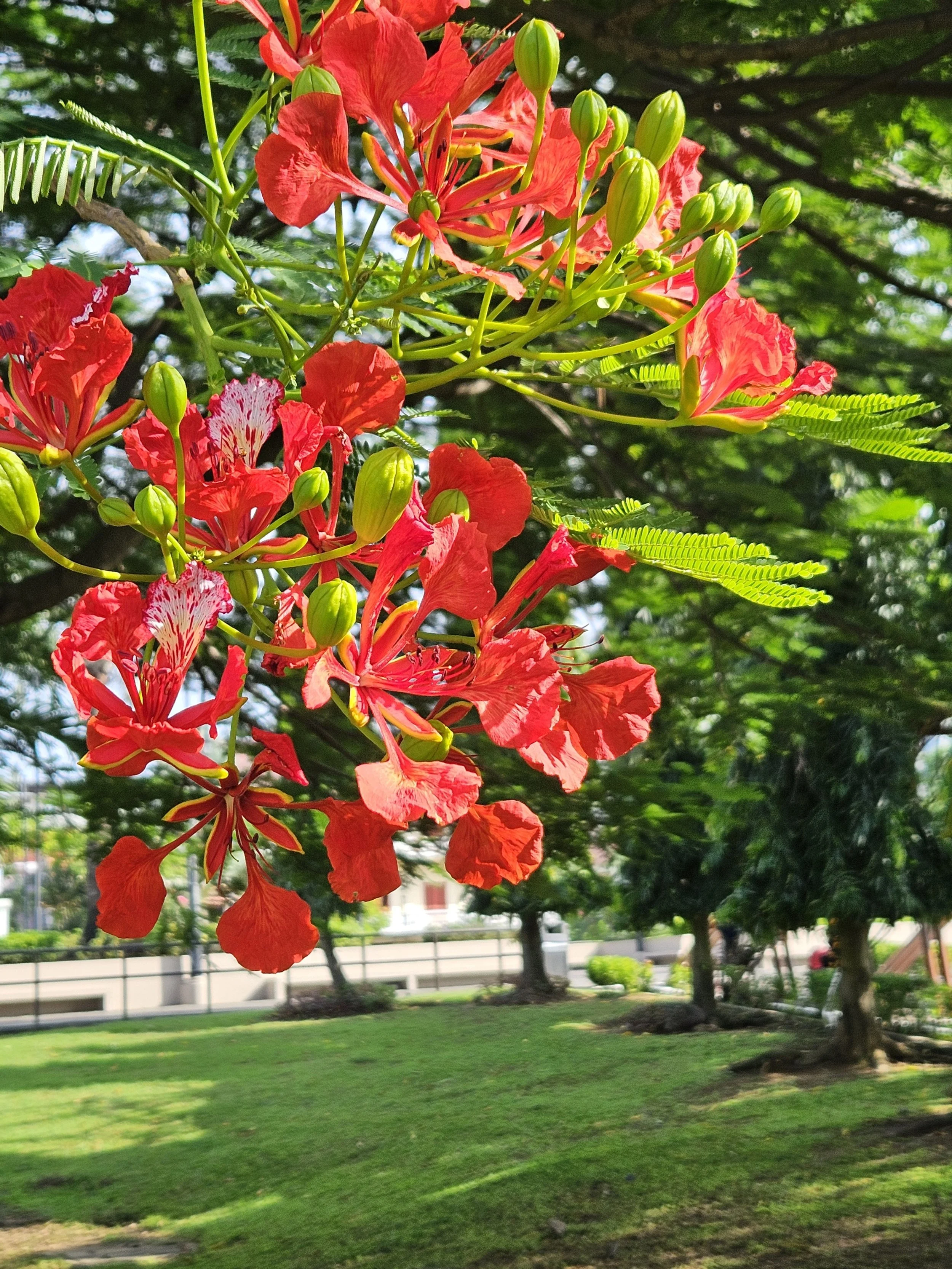 Early morning 8.25.24, I arranged for my Airbnb host to drive me to the SJO airport to catch a flight to Panama City, roughly 2 ½ hours by plane (PTY airport). When I arrived I took an Uber to Casco Viejo or the Old Town district to get breakfast at a Creole restaurant I had researched, En La Fonda and to wait until I could gain access to my Airbnb in Panama to drop my bags. While I waited for a restaurant to open, I spent some time in a park next to the water where I was checking out this beautiful red flowering tree. It was nice to just sit in a public park taking in the morning as locals started their morning. Vendors were bringing setting up tables to sell various trinkets and residents were walking their dogs, meanwhile I felt like I blended into it all. It was very refreshing to just exist in the space without having to do much.