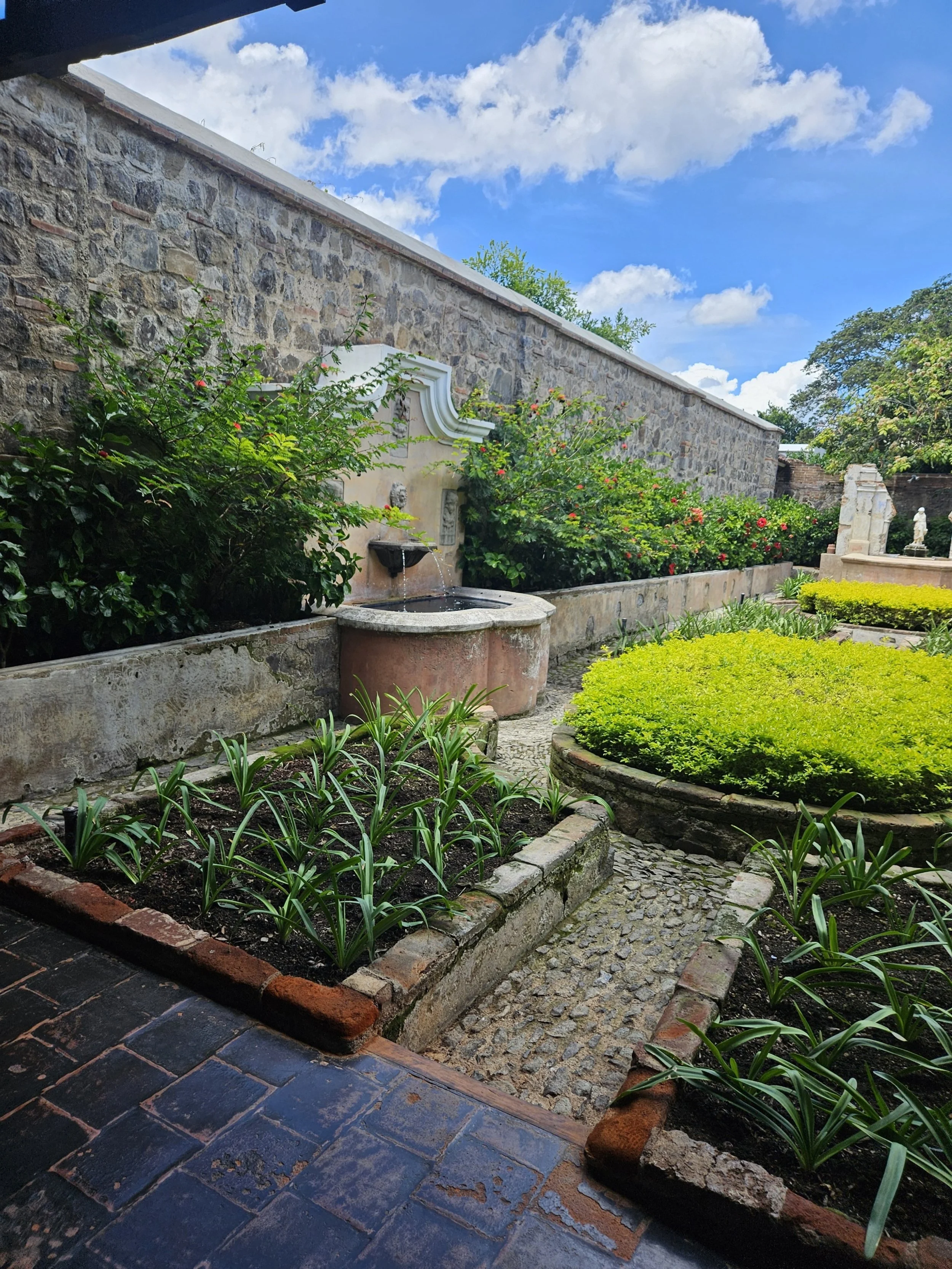 After a nice breakfast and some time to relax, I was off again. I was meeting my tour guide, Gerardo in front of the restaurant I ate at, but had some time to kill, so I crossed the street to Parque Central Antigua to walk around. There is a mix of manicured and more natural growing trees and other plants as well as a beautiful large fountain in the middle. This is the main park where indigenous women bring their handmade craft items and other souvenirs. I looked around but had committed to myself not to purchase anything until after my tour to reduce what I had to carry with me for my 3-hour tour. I did meet a friendly indigenous vendor, Ruth who happened to be from the same town as my tour guide, I ended up buying some items from her when my tour was over.